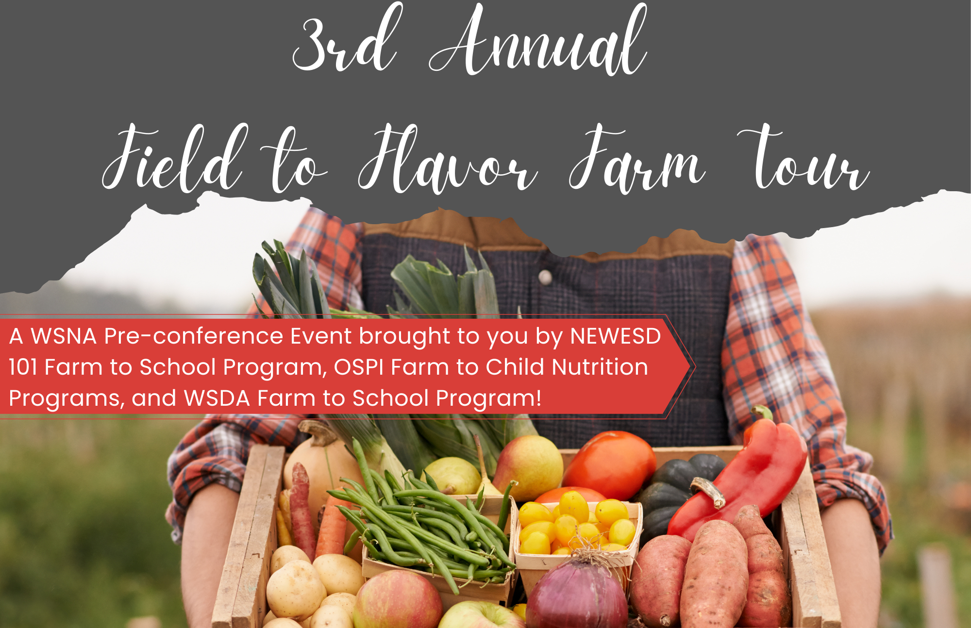 Join us for the 3rd annual WSNA Pre-Conference Field to Flavor Tour! Field to Flavor highlights local farmers and producers, fresh and value-added products, and recipes you can use to start or grow farm to school in your school or district.
